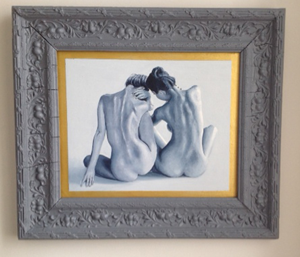 2 Small Nudes in an antique frame oil and acrylic on wooden panel 32x39 cms