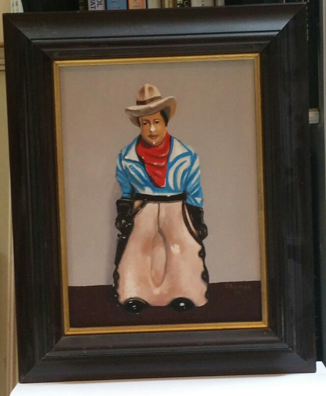 Still life of a cowboy plaster figure. Oil on canvas 10"x7"