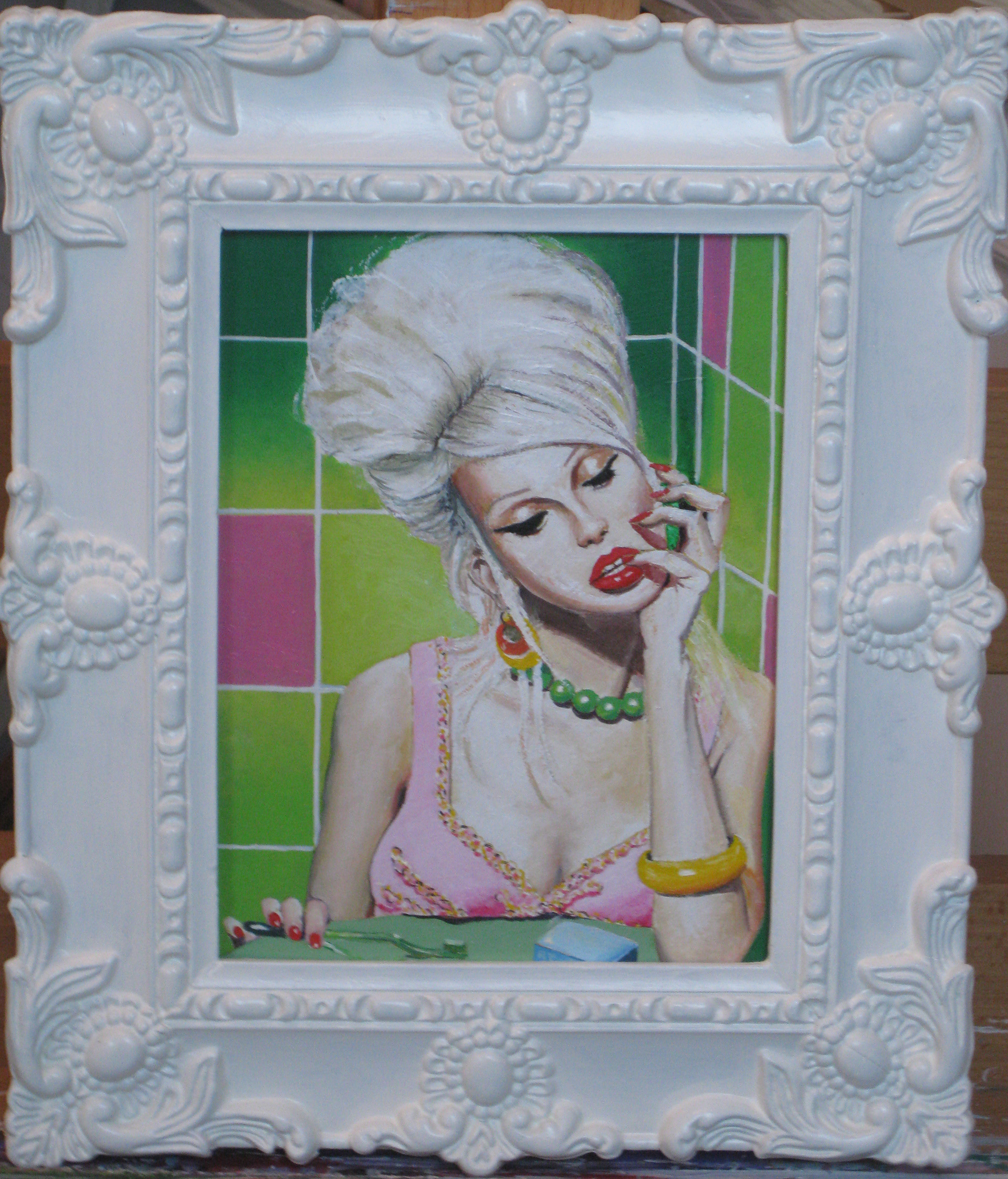 Oil and acrylic on panel in an antique frame. 9.5"x6"