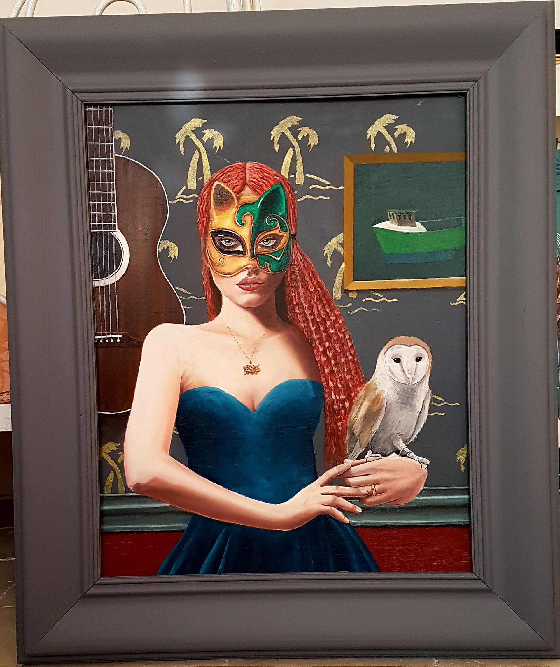Owl and Pussycat oil and acrylic on panel 50x40 cms