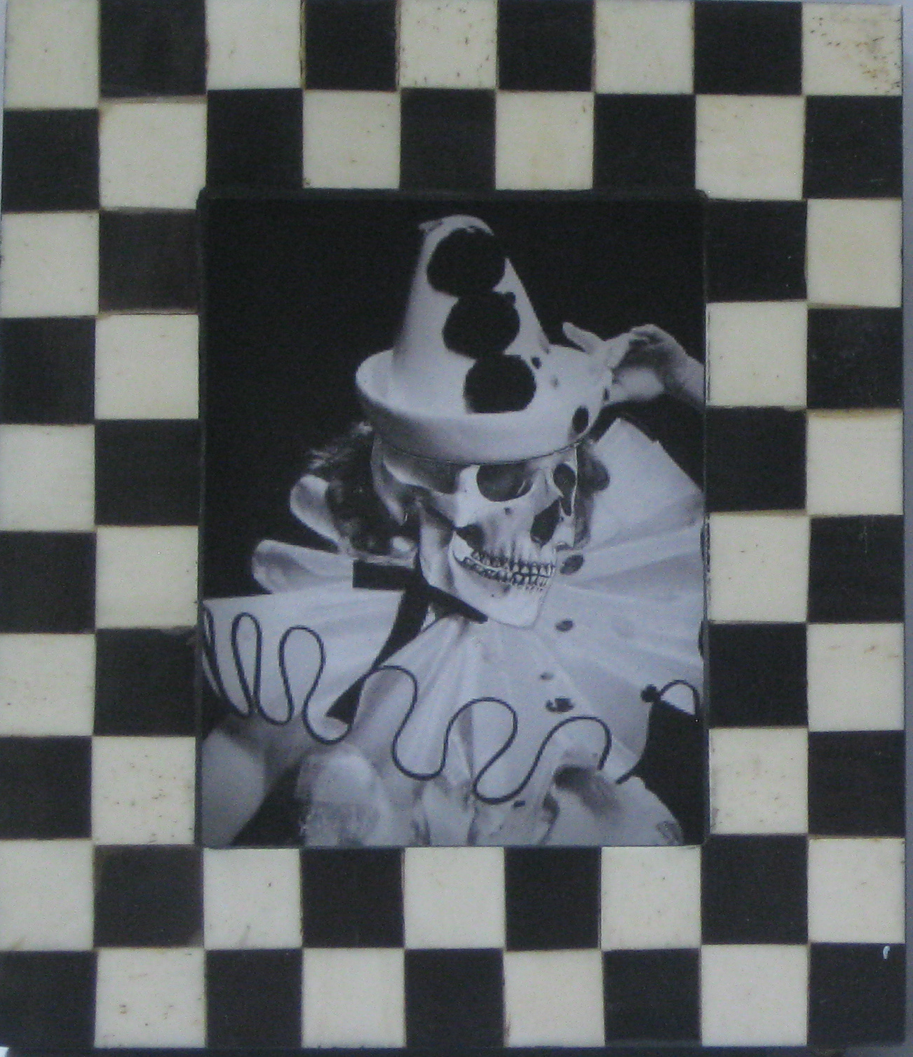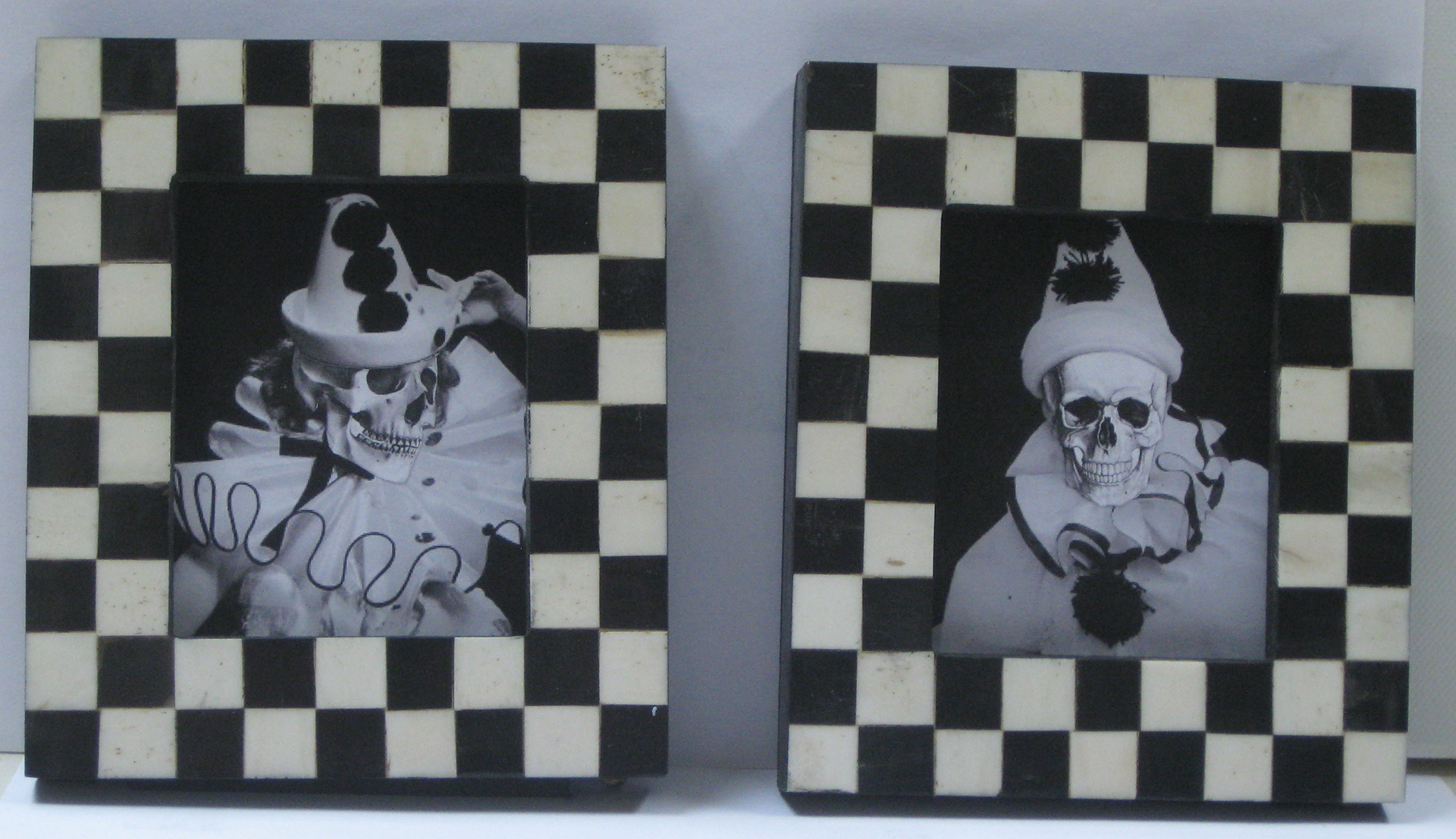 Collages, paper on paper, glue and paste. each 9x7 cms in decorative frame