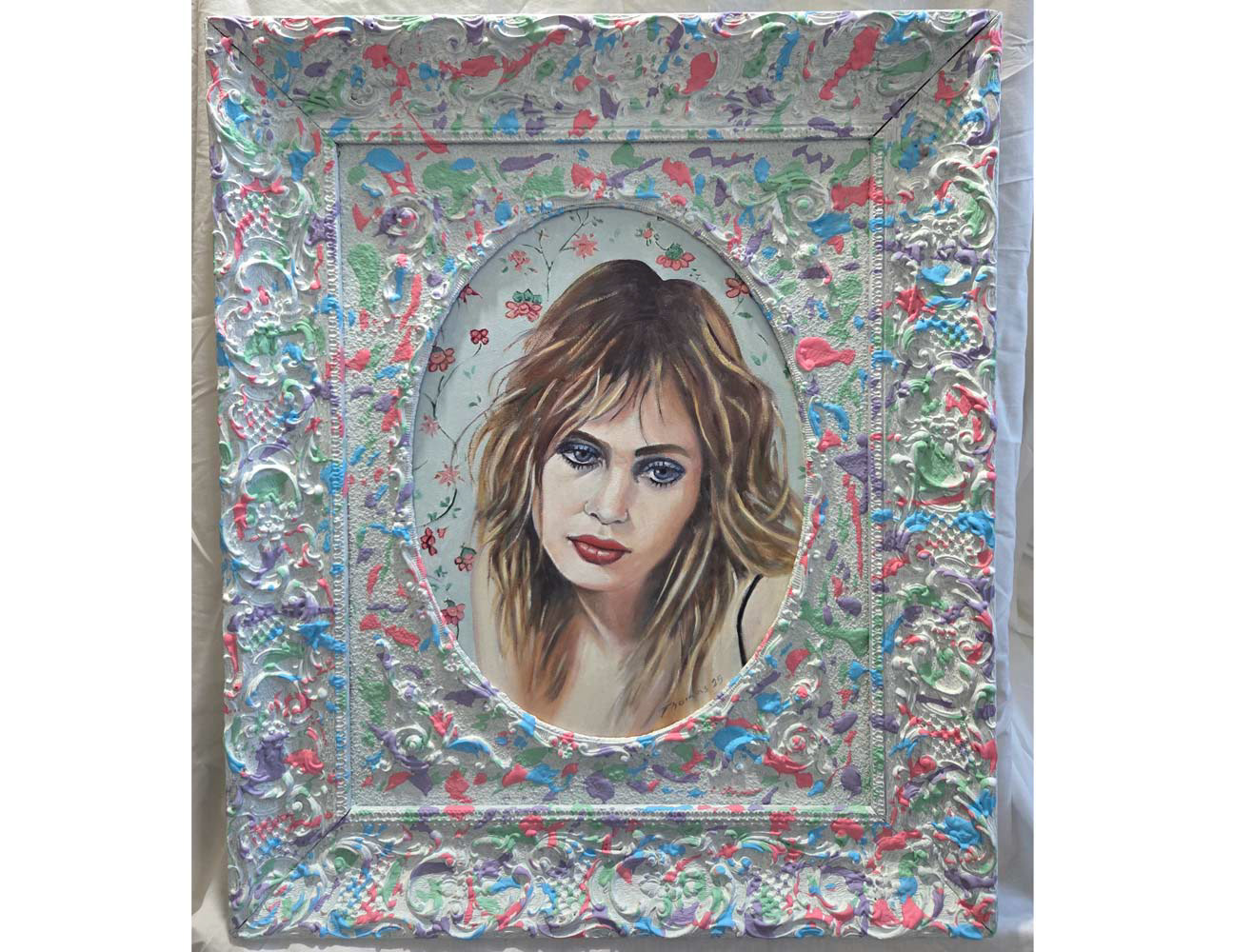 Whatcha gonna do about it oil on panel in antique frame